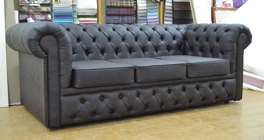 - Chesterfield. The sofa in the style of "Chesterfield" is known for its "quilted" or "tufted" style.Some of them have a patterned component on the back of the sofa, while others have a seat section. "Chesterfield" must contain natural leather, and they also stand out with an oblong appearance. These sofas are also popular, but they can not be called budget. The average price for “Chesterfield” in the salon “A lot of furniture” - from 35 tons.