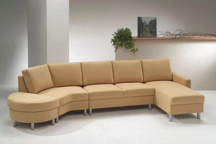 In a room with a standard 2.4 m high ceiling, a long sofa with wide sections and a low back will look good, while a sofa with a high back will fit into a room with a ceiling of 2.7 m.