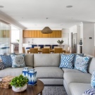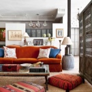 - A room with a sofa of gray or snow-white color can be revived with a combination of orange and gray-blue shades.
