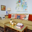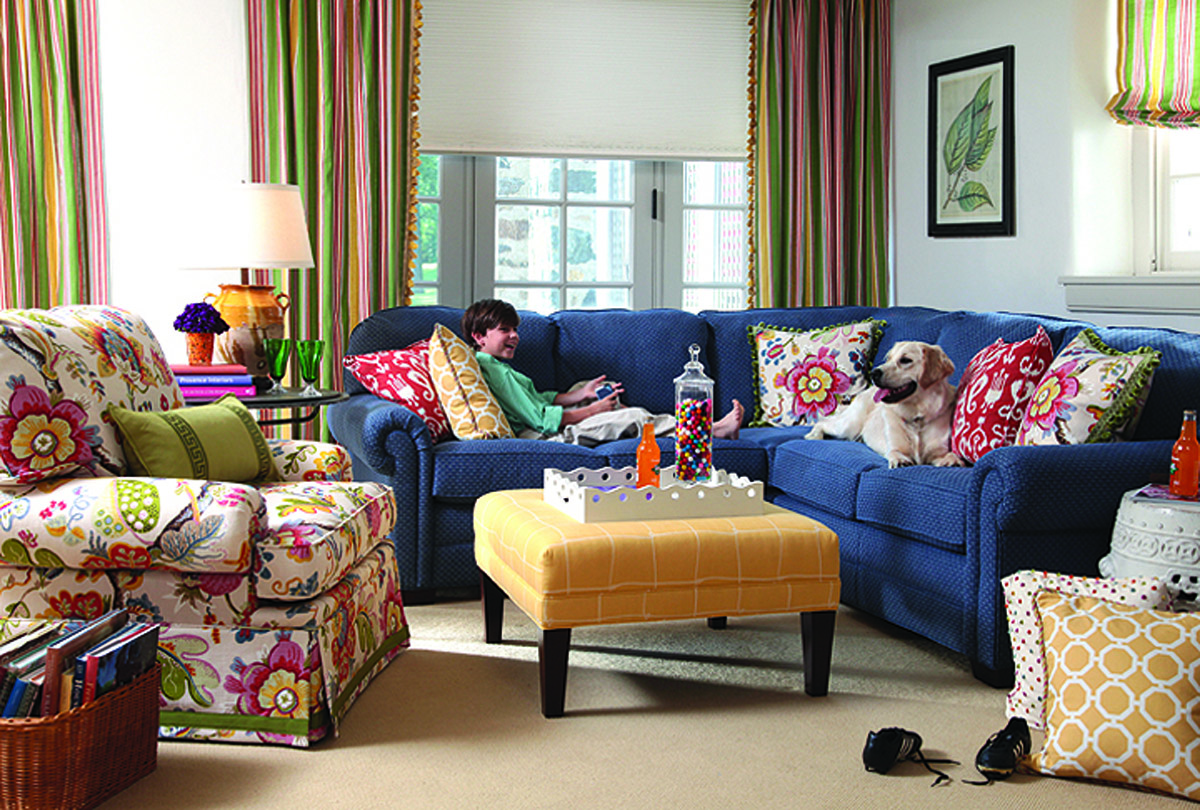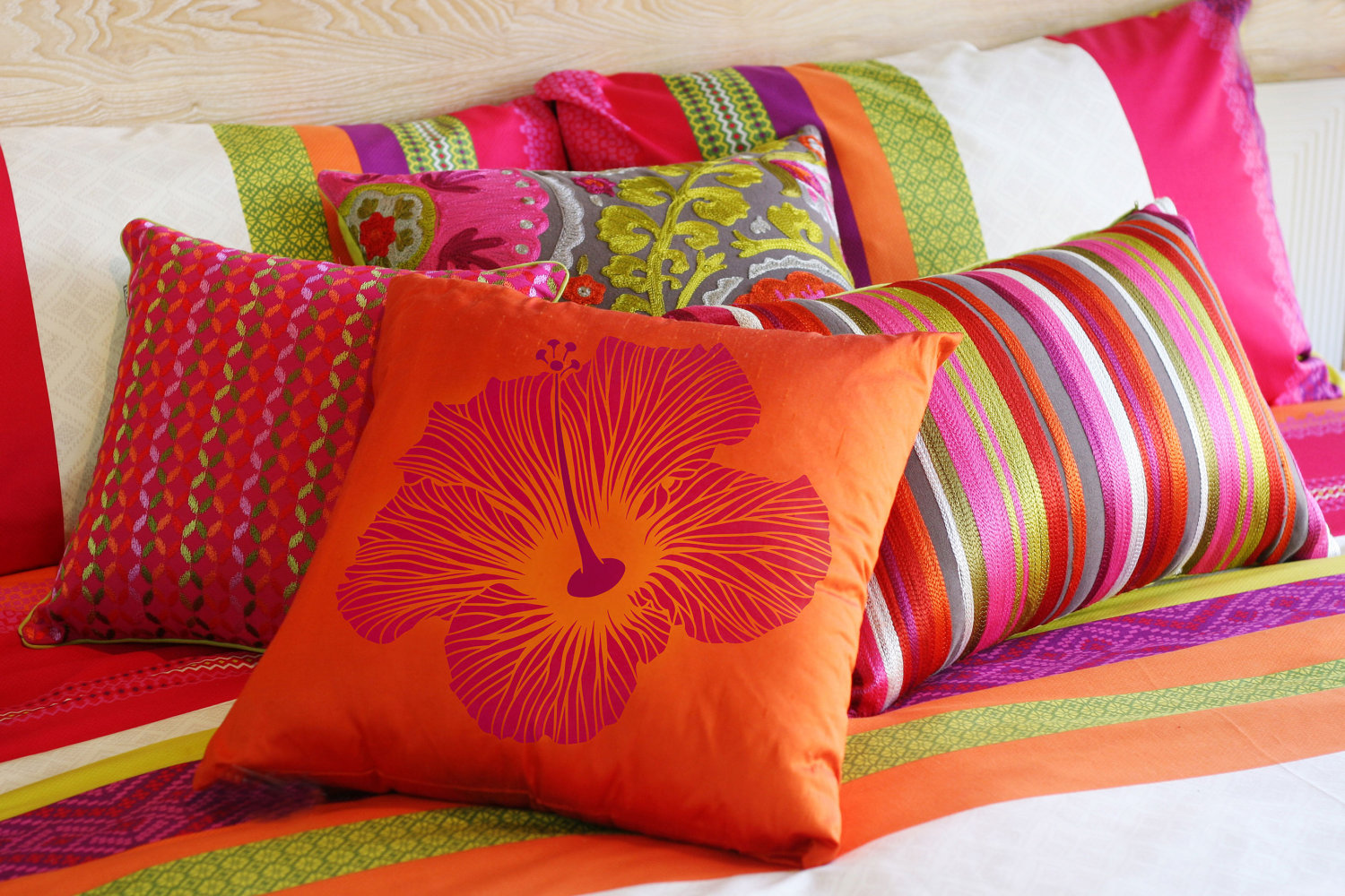 - making accessories from the same textiles as curtains (an imbalance and the feeling that the cushions are made of the remnants of fabric)