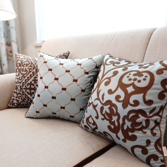 Laying out the pillows, you should avoid overlapping the same pattern. If prints are repeated, it is better to place them away from each other.