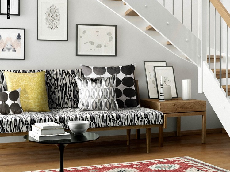 Be sure to need a clear silhouette of each item. It is very important that each pillow is visible in the design. Make it easier if you use the technique of contrasts.