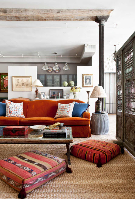 Laying out the pillows, you need to take into account the overall interior of the room: