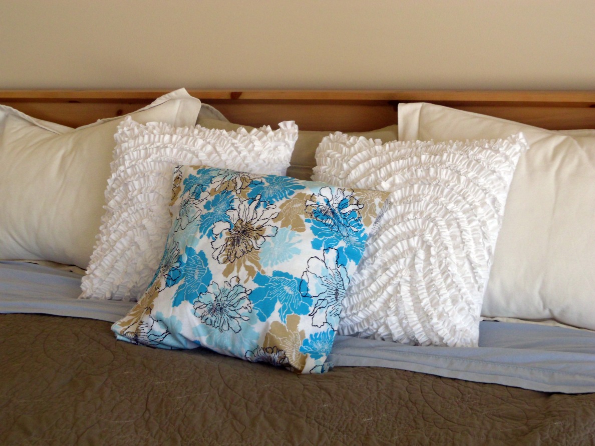 You should not make one corner of the pillows - it is ugly, besides the composition will outweigh visually in one direction.