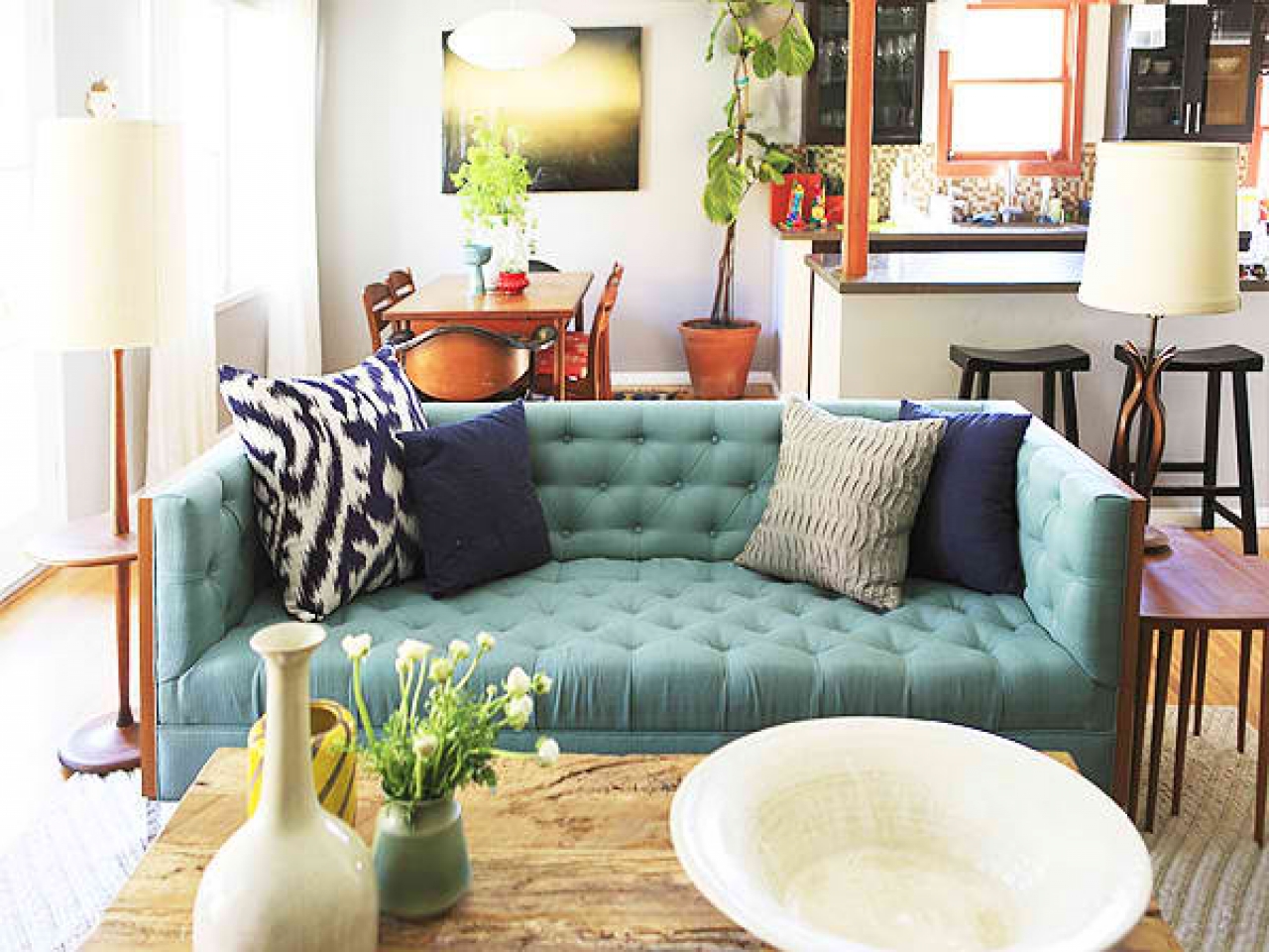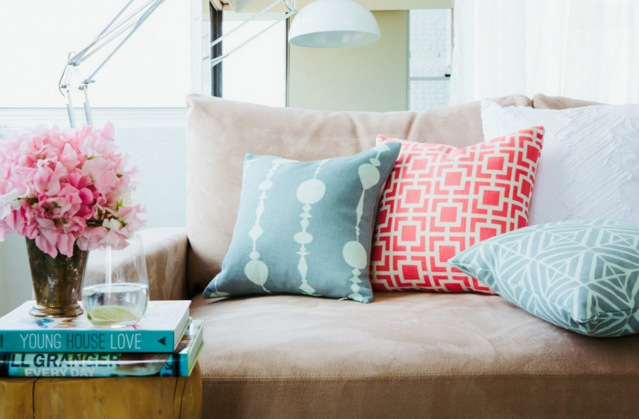 - color matching sofa and pillows (instead of the ideal combination, the effect of lost accessory on the general background is obtained);