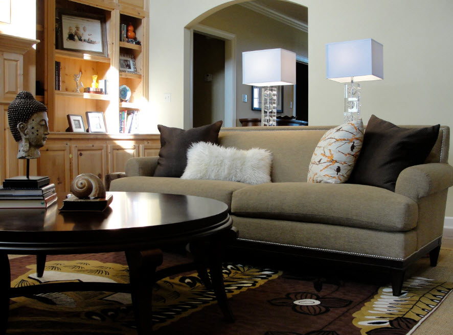 Monotony can deprive coziness of any interior. You should avoid boredom and choose accessories for the sofa of different sizes and shapes. .