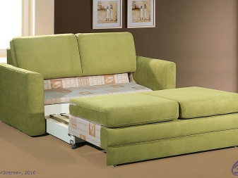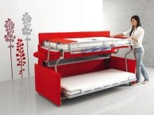 Products with a mechanism "Accordion" have similarities with a musical instrument. These products are durable and reliable, have a simple device. They are very compact in assembled form, they have in the back cabinet for linen. They unfold in length forward, so they can be put in a narrow room. In a sleeping level place is transformed, if you raise the seat and pull over. Such options are very popular among young people.