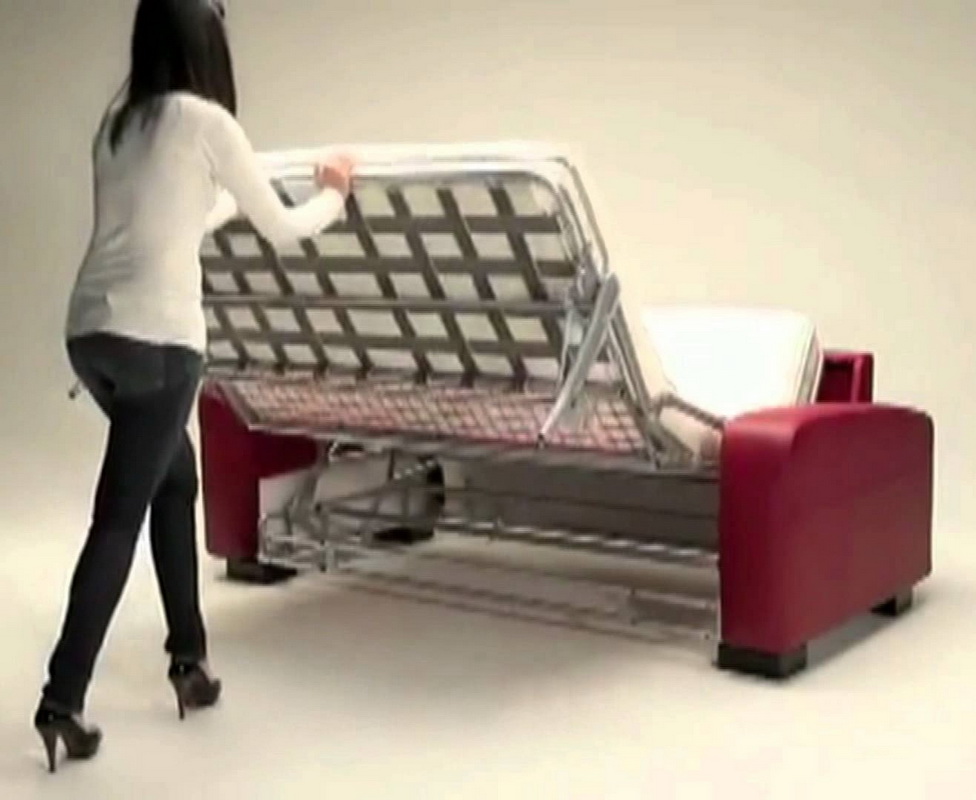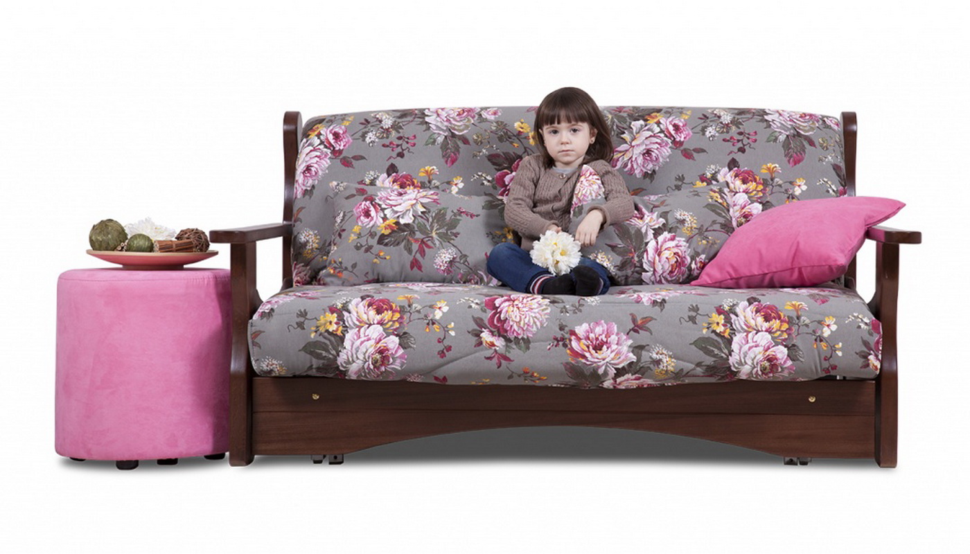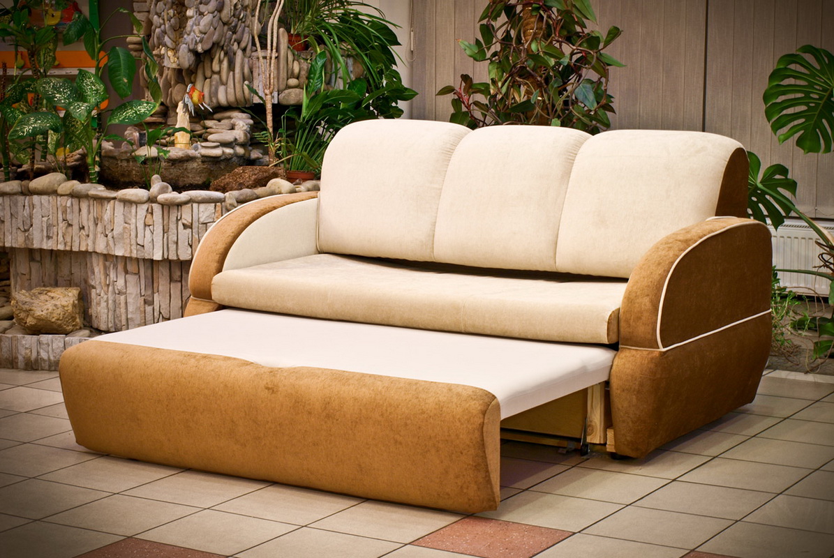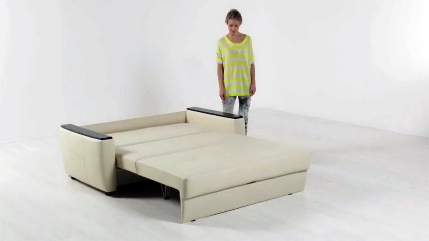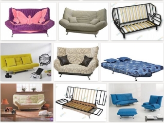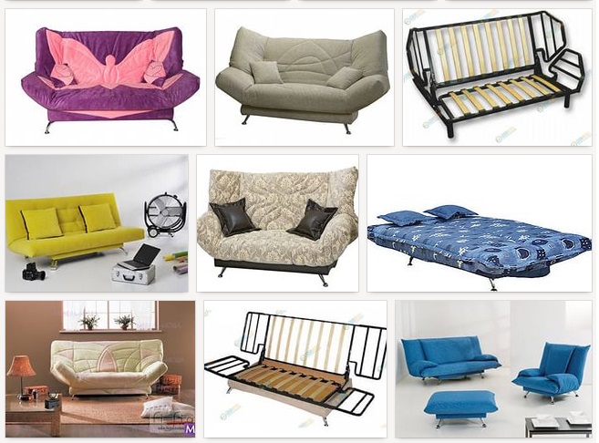 Classic folding furniture with a simple design in the recent past was the only one on the market. Mechanisms are installed on this furniture. "Book". For the transformation, it is necessary to tilt the seat up to a sound click and lower it back, the back reclines horizontally. This product has a compartment for linen, it can be operated daily, because it is reliable and durable. The disadvantage is the installation at a distance of 10-12 cm from the wall. Mechanism "Click-klyak" transformed as "Book", but has a more advanced mechanism and modern design. These models have an attractive price and they easily fit into small apartments.