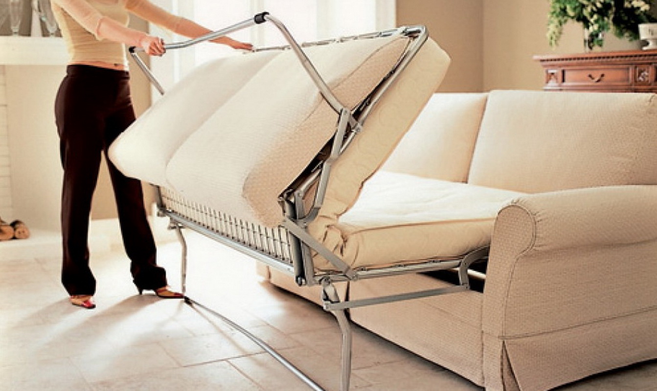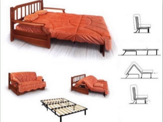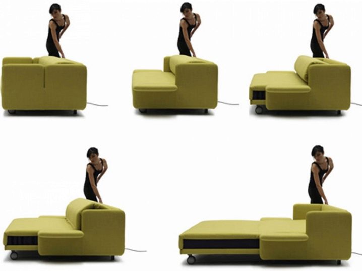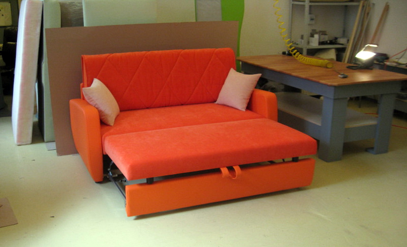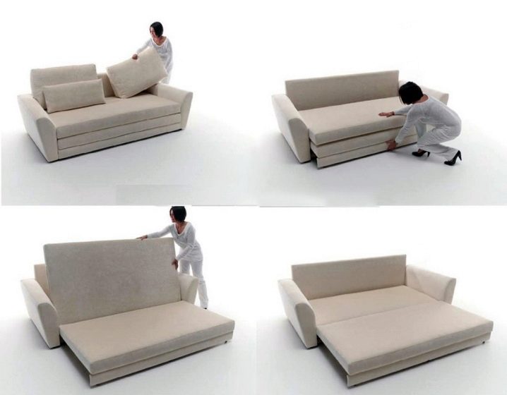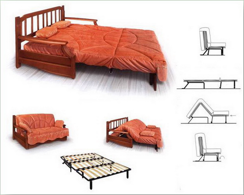 Unfolding models are french, american, italian folding beds.These models in the unfolded form resemble a folding bed. To expand the French cot, you need to remove the seat cushions and disassemble the mattress in three steps. The American folding bed understands in two steps. The area for sleeping is an orthopedic mattress of spring blocks. Italian folding bed is more expensive than all these models, seat cushions are not removed. The device is not simple and is designed for a certain person's weight. The disadvantage is the sagging of the mattress in a disassembled form. For everyday use, these products are not very durable and do not always have space for storing clothes. Sleeping on them is not very comfortable.
