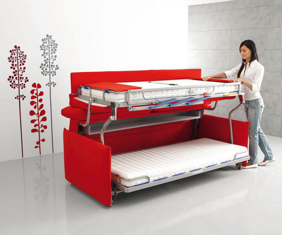 Folding furniture is multifunctional. A double sofa can be a place to sleep for one or two people, maybe with a box for linen, in some cases it can become a table, a workplace. This product is located on a small area, so it is used in small apartments. Folding furniture can be divided: