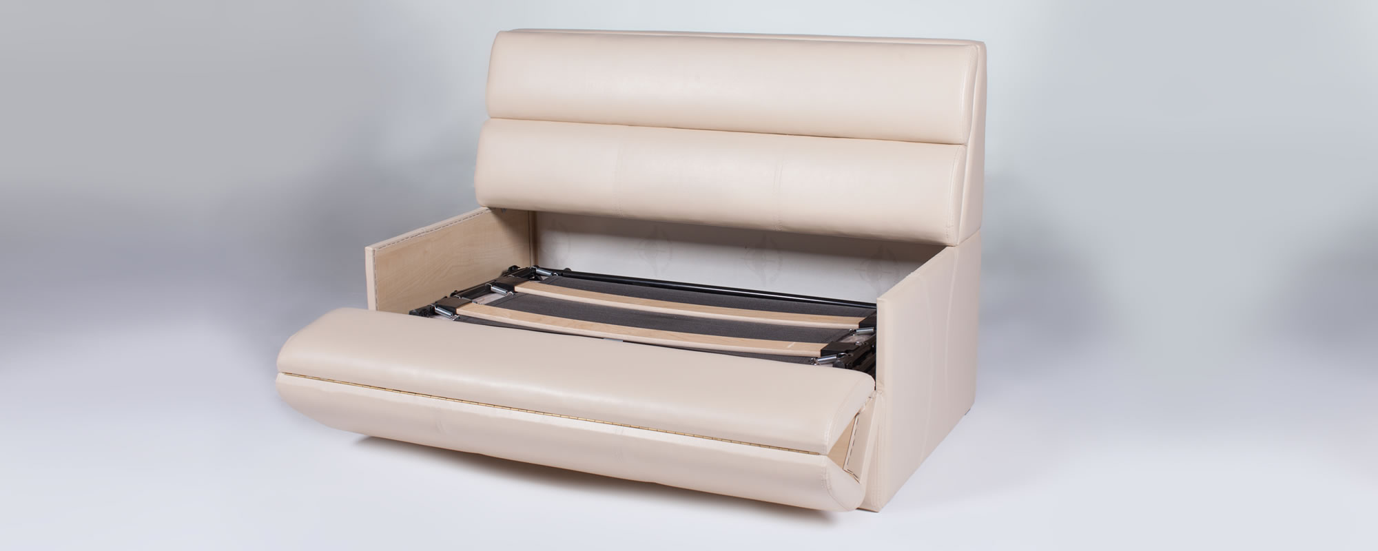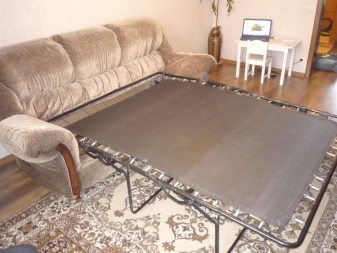 - Frame base. There are two options here: an awning-lattice base and a frame grid with additional pipes. The first option is more comfortable and soft, so such a folding sofa for everyday use will be more comfortable. The second option of the clamshell has less softness, but greater strength.