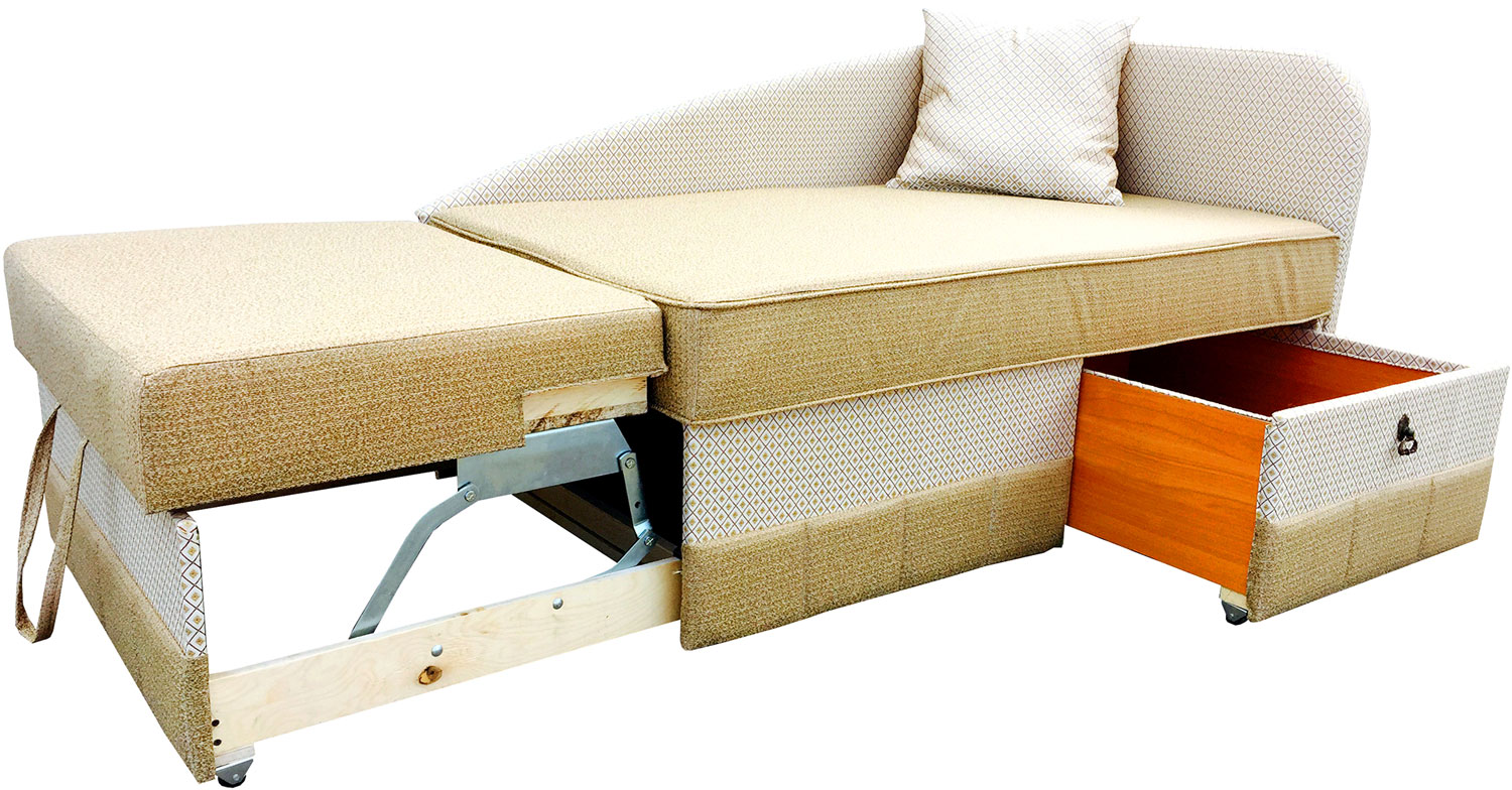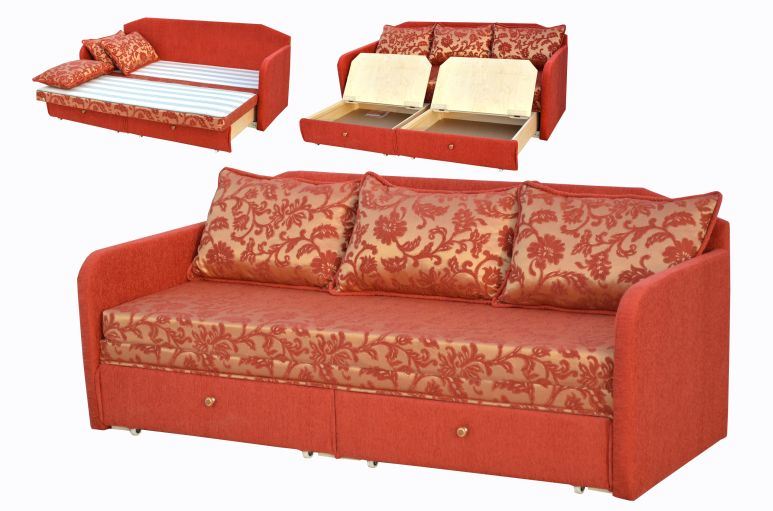- Three backs. This product looks very much like a regular sofa, where there are drawers for storing clothes. However, there are no armrests in it, and the present back is distinguished by a small height. This product is complemented by a special mattress. In most cases, these types of sofas are made from wood.Using this model in the bedroom instead of the usual bed would be a good option. Such products have an orthopedic mattress, in terms of comfort they are in no way inferior to ordinary beds.