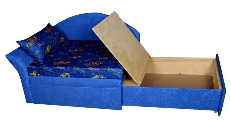 - Bed-sofa. It is a structure with a sleeping place and a special compartment suitable for storing bed linen and clothes. This place can significantly save space indoors if there is a shortage in the children's room. This type of model is well combined with different styles in the interior.