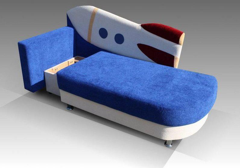 - Sofa sofa. Having low armrests and a back, it will easily fit even into the most unusual interior of a children's room. This product has a solid mattress.It can be made more attractive with the use of additional pillows suitable form.