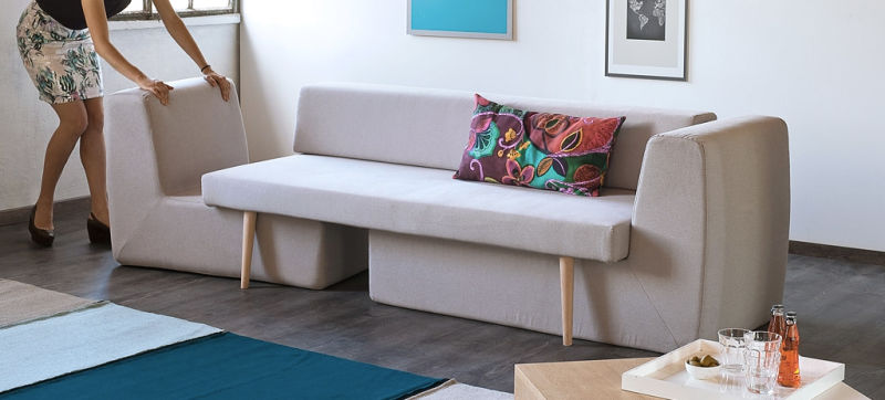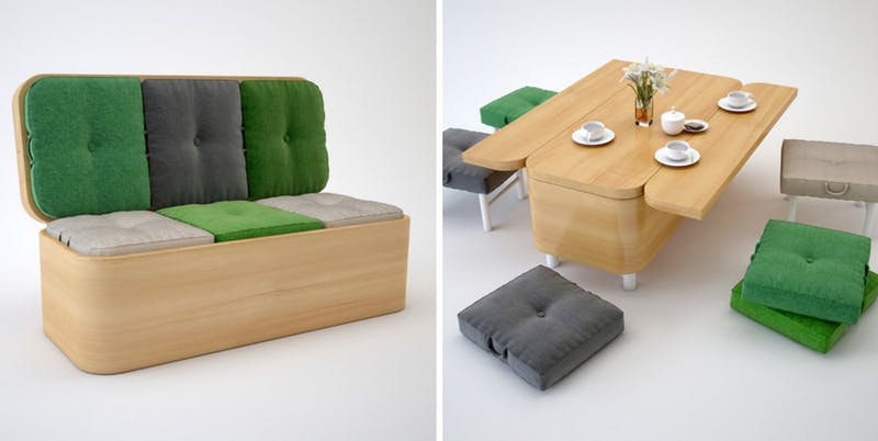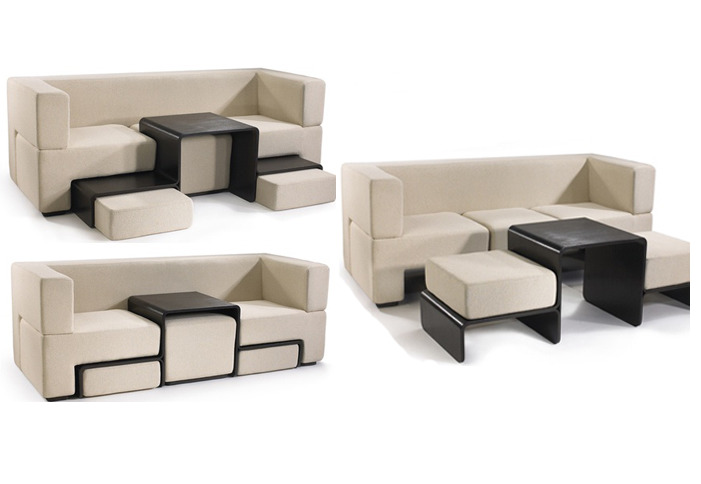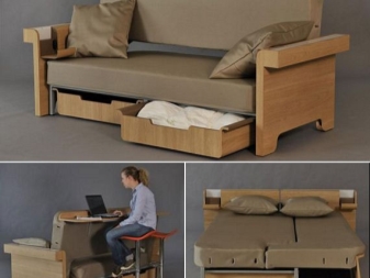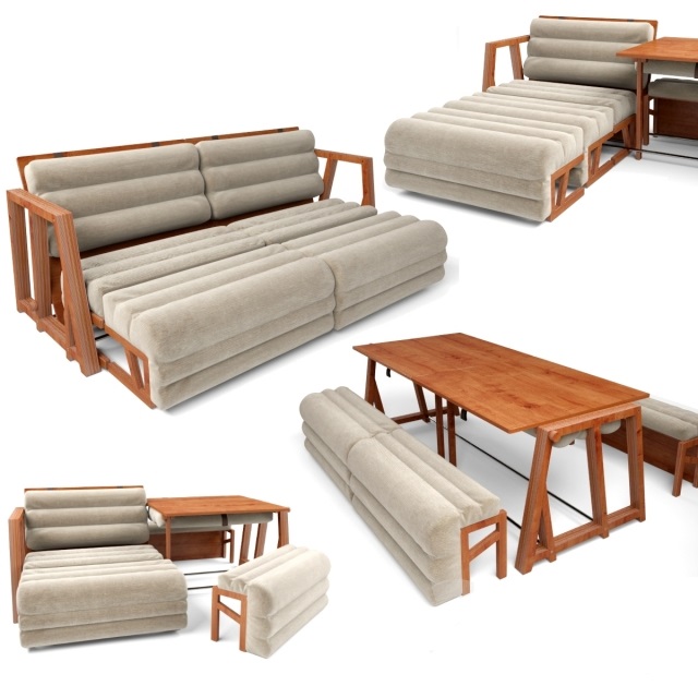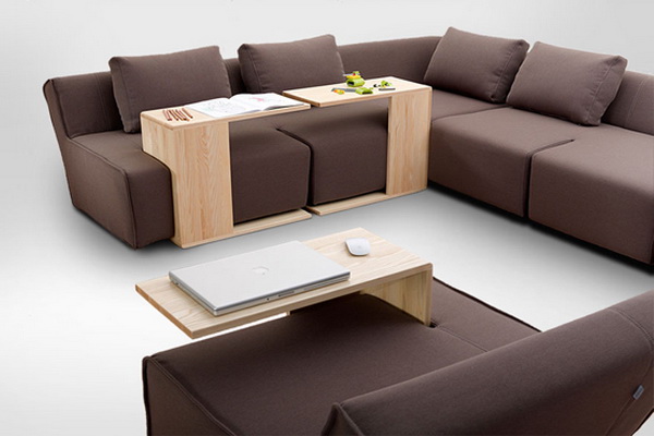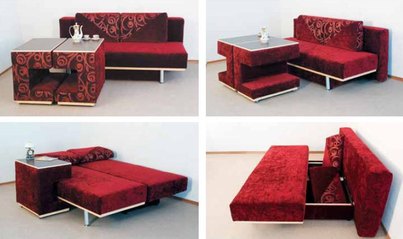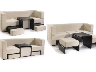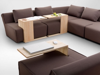 This option can combine not only two, but even four useful things. You can purchase an original sofa with a table that will fit in well with your interior. For the manufacture of such furniture used textiles, plywood or plastic.You will be able to express your imagination and, if you wish, rearrange the modules. So you will get a completely different composition that will be able to create the most different furniture.