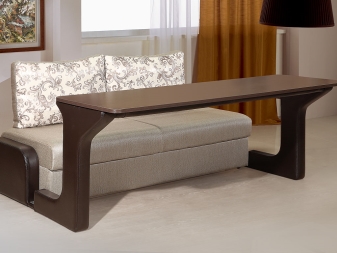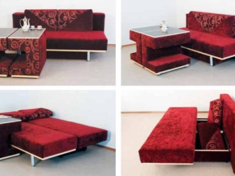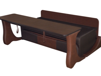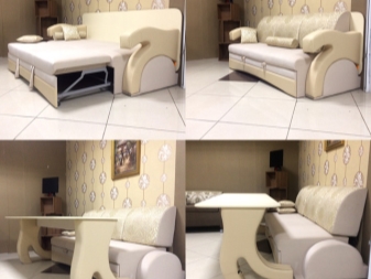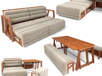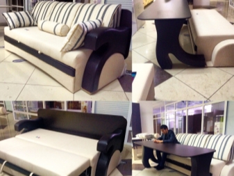 There are also other various models - for example, where the table-top "hides" in various niches or is formed from armrests.And there are also such options, when after small manipulations the sofa disappears altogether, and a separate large coffee table appears in the room. Everything will depend on the capabilities and imagination of the manufacturer.