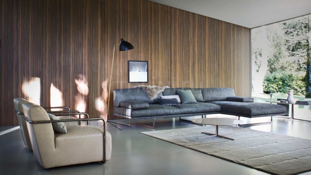 This model is more suitable for public institutions. The sofa from the Fabrikant company will be appropriate to look in a strict office, cafe or night club. The laconism of the forms can be compensated by an interesting upholstery. The sofa stands on metal legs, the inner frame is made of wood.