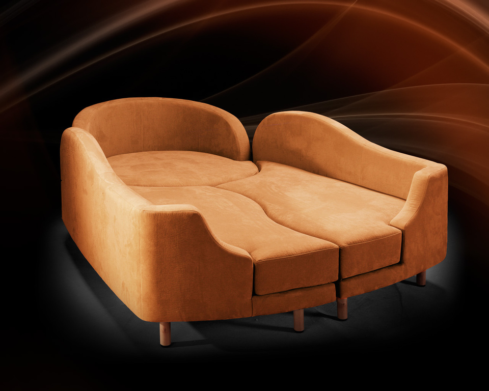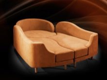 "Napoli" has an unusual streamlined shape, its design is simple and concise. In this model, there are no armrests, making the appearance slightly resembles a couch from the time of Louis XVI.Dimensions are also not quite familiar: length 240 cm, and a depth of 203 cm with a relatively small height of 80 cm. The transformation mechanism "dolphin" is designed for everyday use. Filling of seats: springs "snake", foam of increased elasticity; pillows: polizon, spunbond, holofiber. It can be made of artificial leather and fabric.