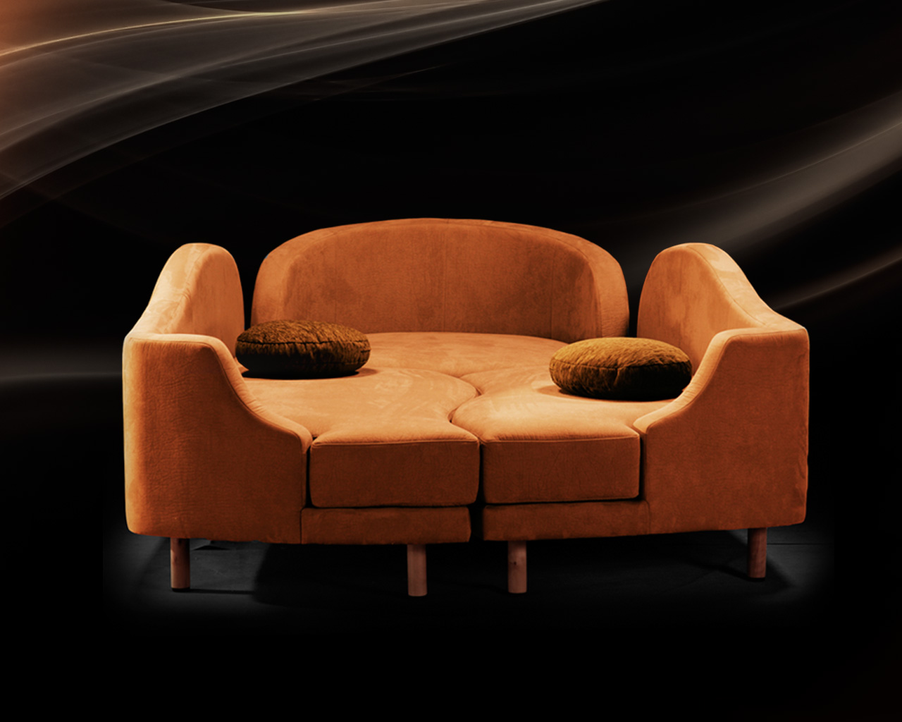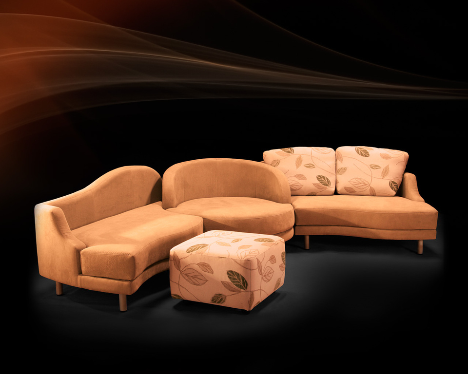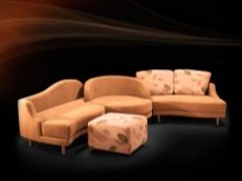 An obligatory feature of the design of such a sofa is the presence of an ottoman or a stool that creates a curved seat, or more precisely, makes out a turning corner.