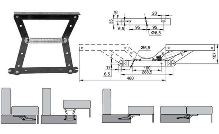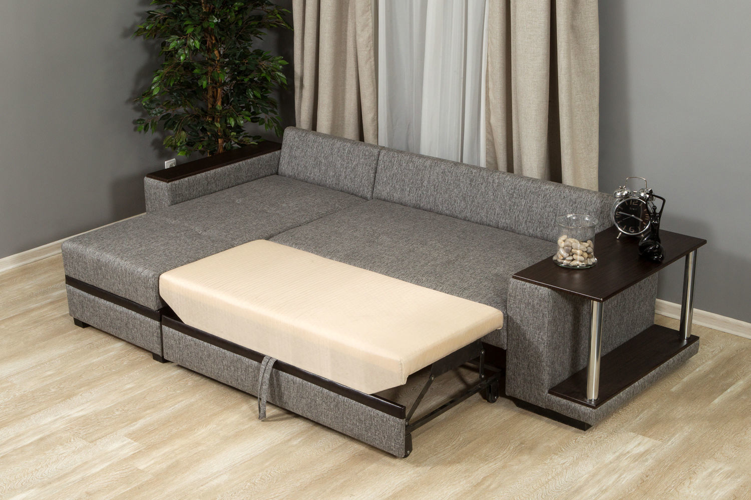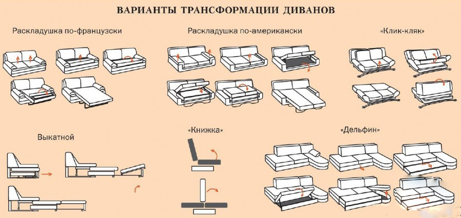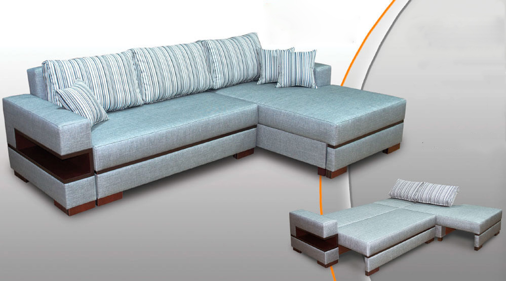 Transformation mechanisms are present in almost all models, monolithic sofas are currently almost not available. The exception is, perhaps, only small kitchen couches. Most often, the domestic furniture market offers corner sofas with Eurobook, Dolphin, Puma mechanisms, or variants of folding mechanisms Sedaflex (American folding bed), Mixotual (French folding bed) or accordion.