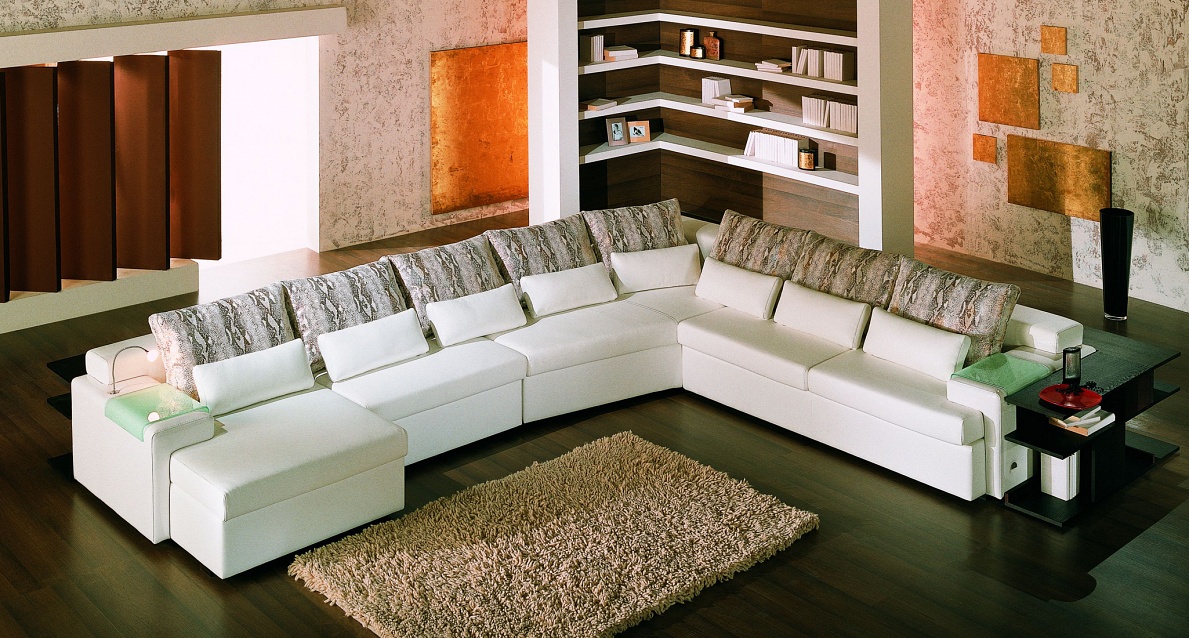 Corner sofas became popular in the 70s. They look large and spectacular, creating an atmosphere of coziness and comfort. Such a sofa is able to accommodate numerous companies, and at night it can be transformed into a large bed. It fits compactly into the space of the room, helping to create the perfect interior, filling up the so-called “blind zones” of the room or being the demarcation of free space.