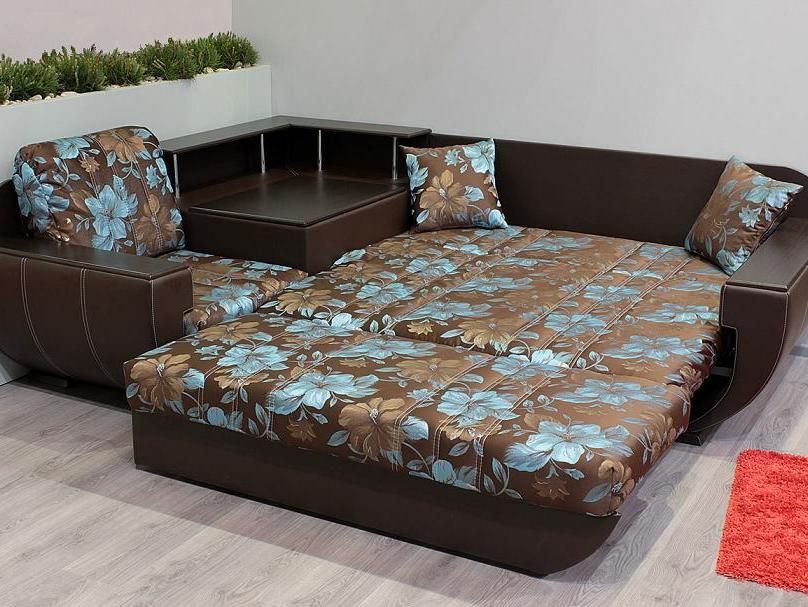 - Another popular option for the transformation of the corner sofa is folding. It can be represented by an “American folding bed” (“sedaflex”), a “French folding bed” (“mixotal”) or an accordion mechanism.