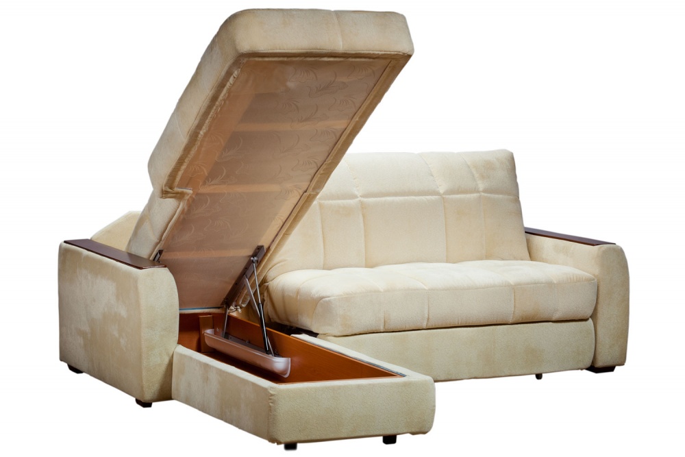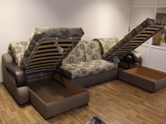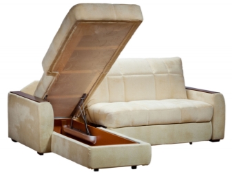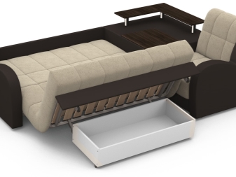 One of the features of the model with the mechanism "Accordion" is the presence of boxes for bedding. In some models, the drawers are quite spacious, so you can make room in the closet.