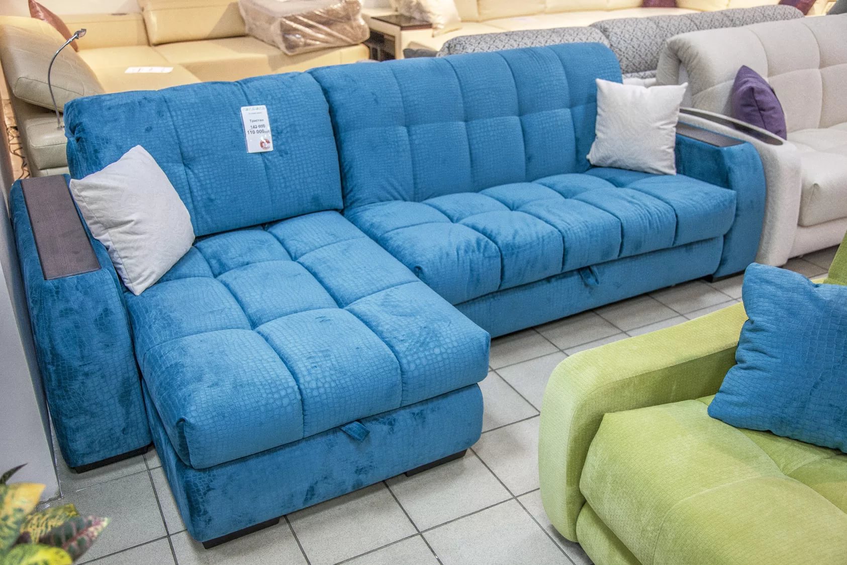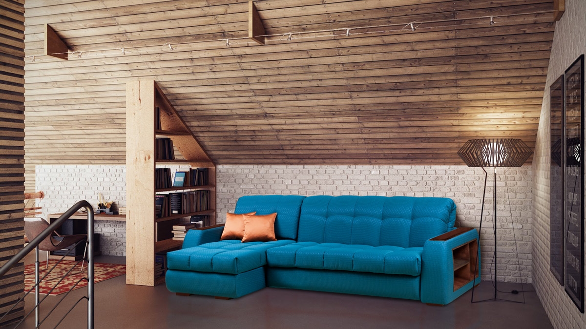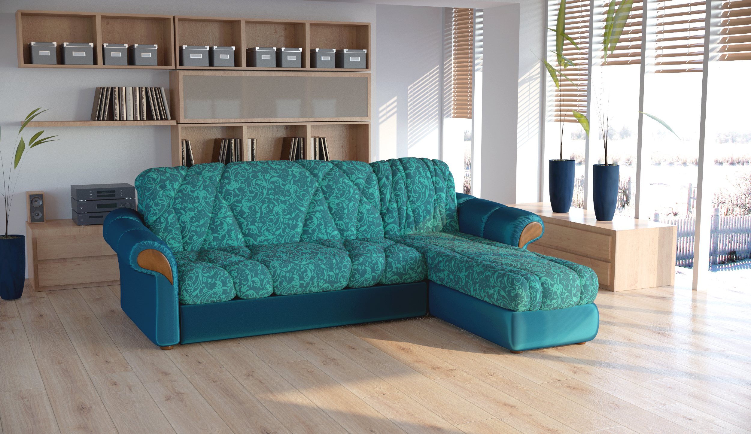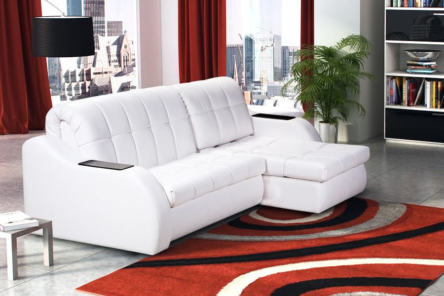 The model of the corner sofa looks good in a corner in the center of the room and can zone the space if the type of room allows it (studio apartment).
