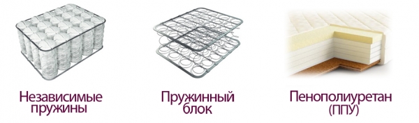 - mattress is better to choose the combined type (puff of polyurethane foam with coir or of independent springs with coir): a tough additive will prolong the life of the mat and will have a positive effect on health;