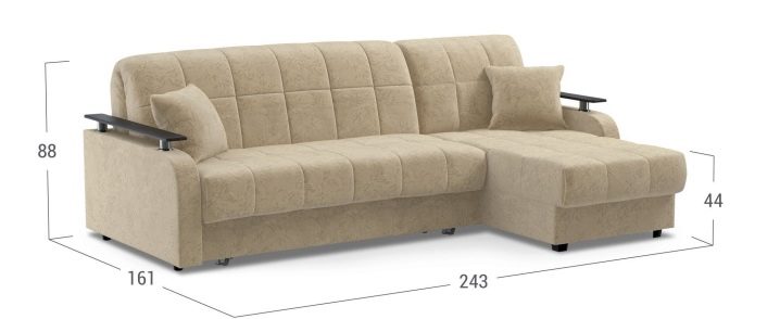 Dimensions of the corner sofa with the Accordion system depend on the specific model. They can be relatively small, of universal size and spacious, designed for two or even three people.