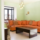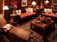 - Living rooms in the style of Eastern countries mysterious and bright. Oriental-style sofa is usually quite low, and its color range consists of red, pink, blue colors.A large number of multi-colored embroidered pillows will be a wonderful addition to the living room in oriental style, as well as turn the furniture into a real royal bed. However, it is worth remembering that a low sofa means a carpet that matches the color scheme of the room.