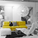 - Monochrome. All the furniture in such a living room has a similar color with wallpaper on the walls. For example, the walls of blue tone in the company with blue furniture, white walls with gray furniture.
