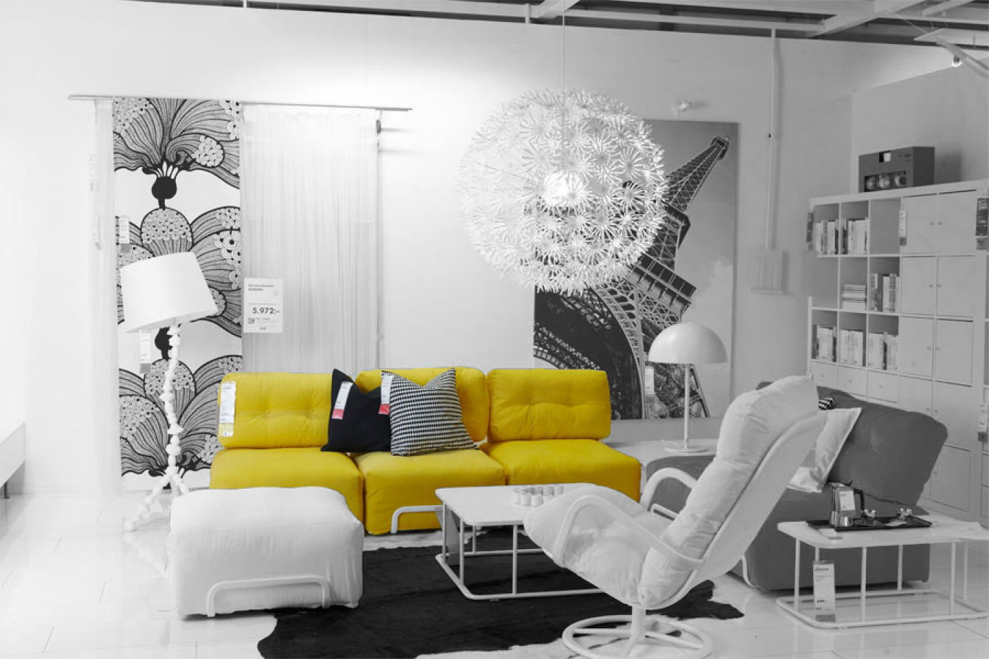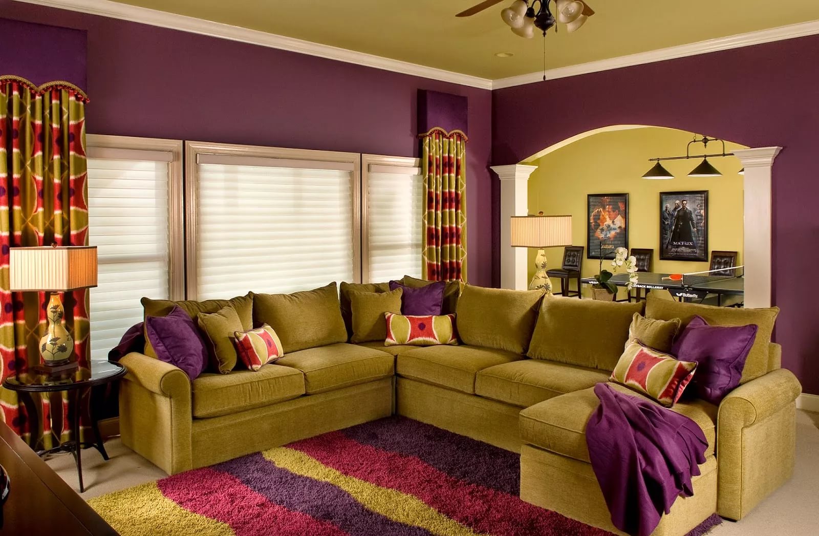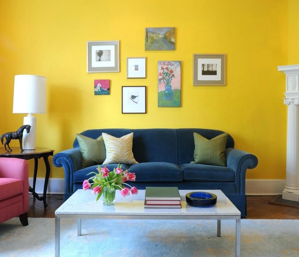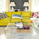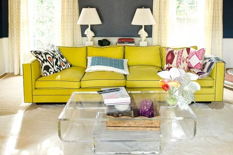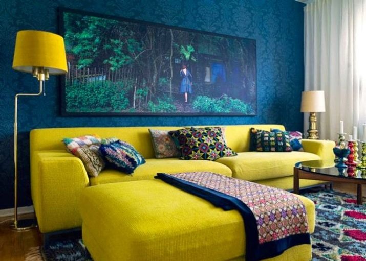 For a yellow couch, a combined living room design is best suited. Well, if the room will be purple, turquoise, blue, blue, red and brown.