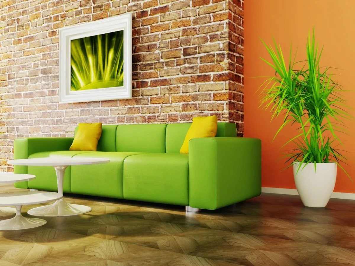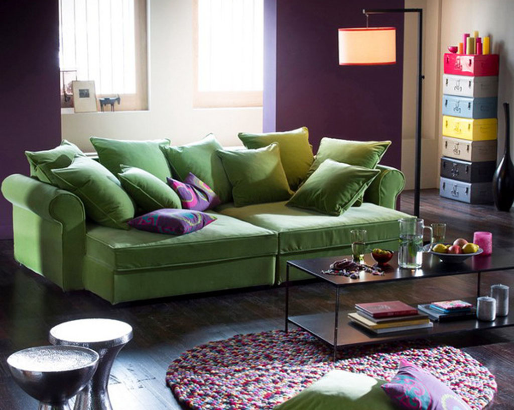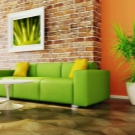 - Bright sofa in a quiet interior. The dim interior of the living room can tire or bring melancholy to life, however, the furniture of a bright palette is capable of making significant changes that will transform a house beyond recognition. Suppose a room can be decorated in white and gray tones, and red or green furniture can help dilute them.