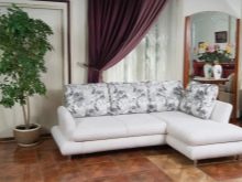 - For small square living rooms A corner sofa, giving a room a toy and a cozy look, will be a good solution. It should be noted that the narrow corner sofas in the unfolded form, if necessary, can replace a full bed.