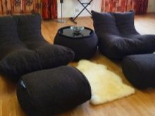 An interesting solution would be the location in the living room poufs instead of a sofa.. To date, puffs have a lot of interpretations, and some are able to fold out, becoming full-fledged beds.