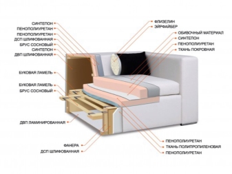 Soft fillers are created from a range of synthetic materials, such as synthetic winterizer, sintepukh, comfort, dyurafil, periotek, holofiber, foam rubber. All of these materials have a low service life, but have an attractive price. Fillers with a rigid base are made of block polyurethane foam, molded polyurethane foam and polyester balls.