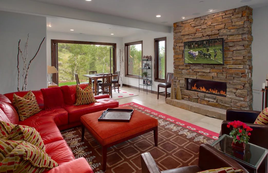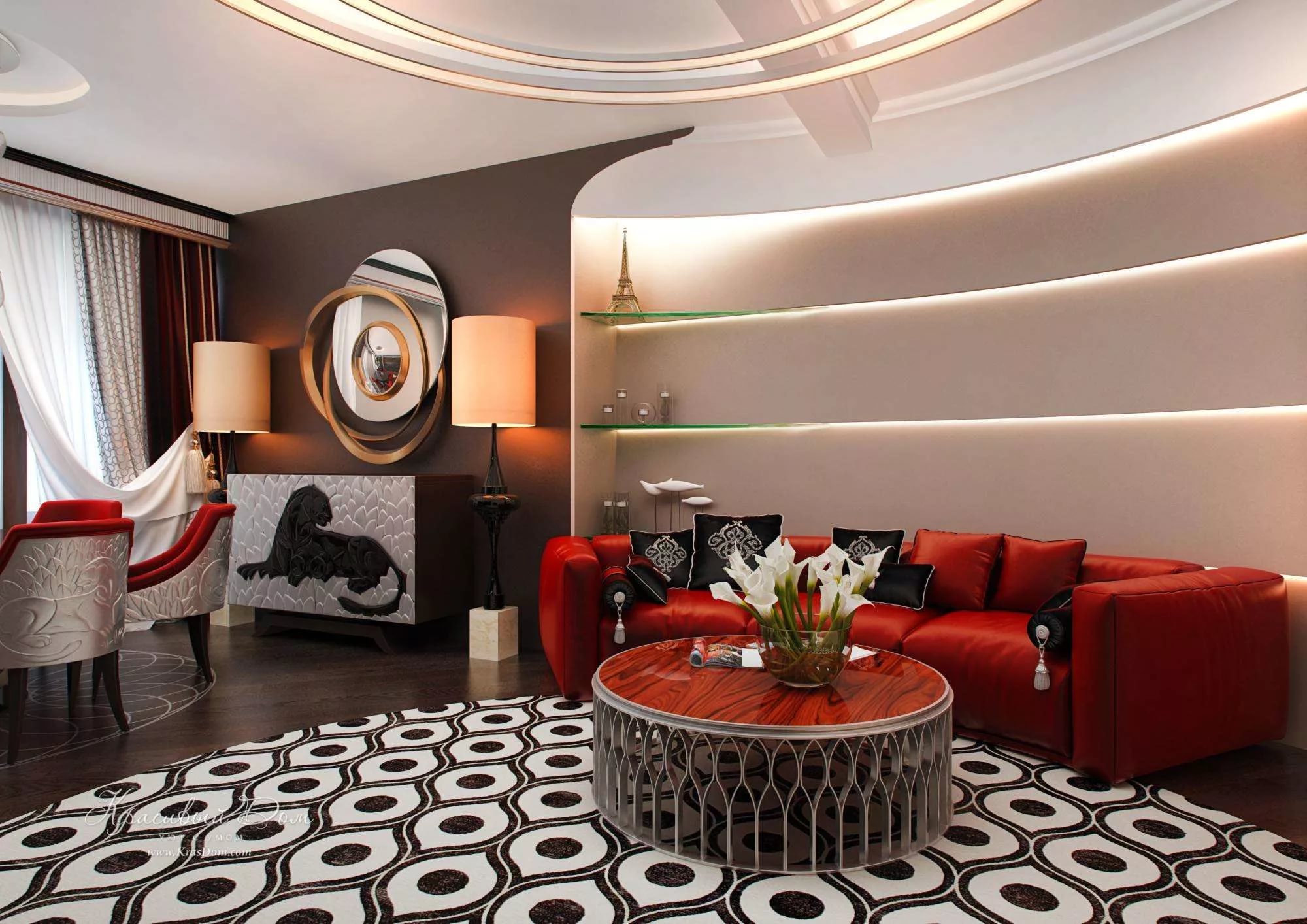 Putting a red sofa in the living room with an interior of a different color can achieve a screaming effect that few people in the household will bring comfort and coziness. But if such a sofa still appeared in the living room, then it would be best to dilute the overall interior of the room with green, orange, golden or beige colors.