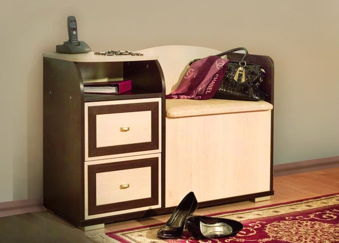 Thanks to the combination of two main components - the seat and the drawers - it allows us to use it not only as an ordinary sofa or bench, which are no longer suitable for anything, but also to keep in it little things, bags, as well as shoes for which It's time.And this makes it not only a useless piece of furniture that covers the free wall, but also a loyal assistant, maintaining order when entering the house. In addition, he will like not only you, but also guests who, for example, do not want to go to the kitchen, but have come to you "for just a minute."