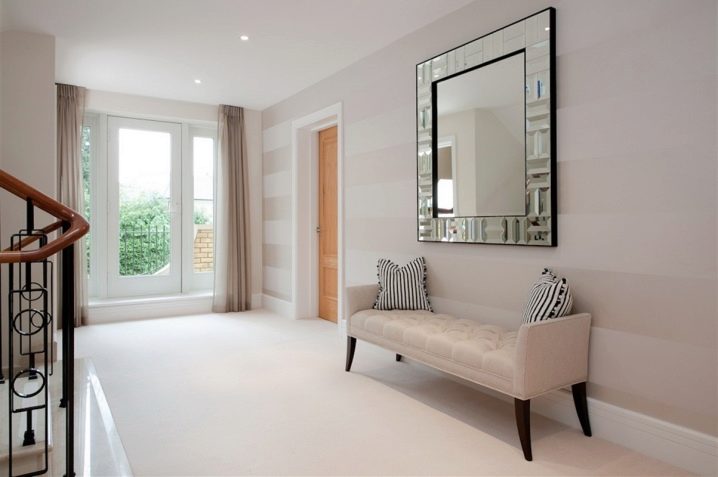 For example, compact oblong-shaped sofas fit perfectly into a square hall. Thanks to him, you will have an additional (albeit small) cozy room, where you will not only get ready for work, but also do more pleasant things. In this case, we advise you to pick up light colors for the upholstery, and also think about your new piece of furniture to be able to unfold. After all, if you have a hospitable family, then a couple of extra beds will not hurt you.