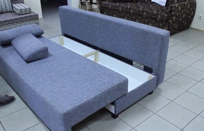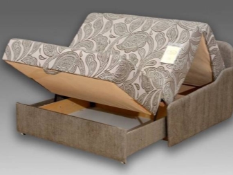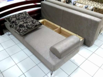 You can install such a sofa not only in the living room, but also in the kitchen. Since it has a width of 120 or 130 cm, it can help in storing many small things that are often in the kitchen. Indeed, in such products there are no armrests, there are quite roomy drawers suitable for storing almost any kitchen items.