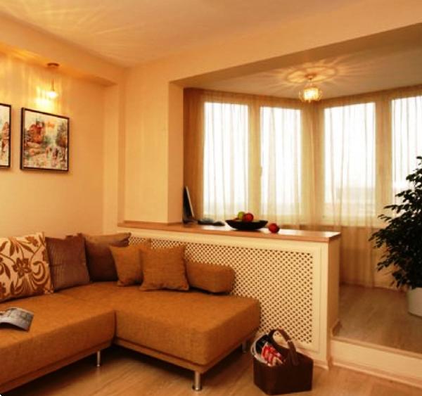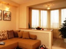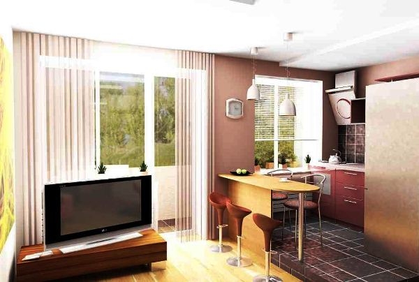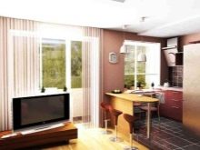 - it is possible to increase the territory at the expense of a balcony or loggia. In this embodiment, it is worth remembering the inviolability of the heating system. Destroying a dividing window, the radiator can be covered with a nightstand or a bar;