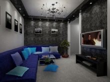 White color expands the space, while dark color makes it deep.. By choosing the right color scheme of the walls, you can get additional volume. The ceiling can be mirrored. This will lead the eye into another space. If there is no readiness for radical solutions, the glossy stretch ceiling will help. And the dark color will reflect more.