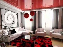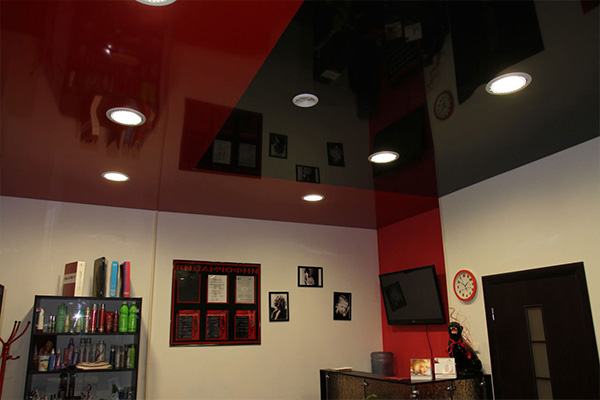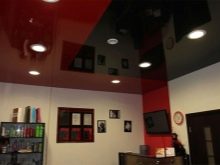 You can create dark plasterboard constructions along the edges of the finish, and white gloss in the central part. This technique increases the ceiling well.