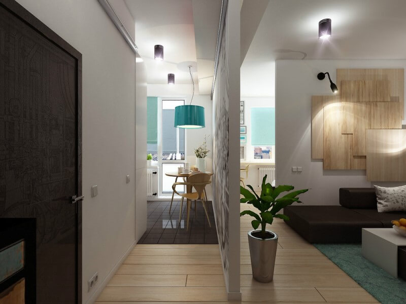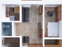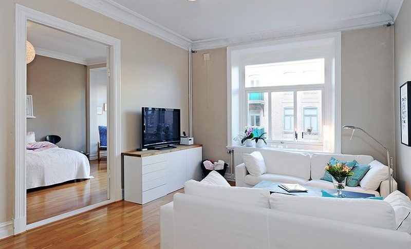 The self-leveling floor with a deep pattern, longitudinally directed floorboards, bright glossy tiles in non-residential areas will all play into the visual increase in the area. In a small room do not need to accent the furniture. Let it merge with the general background of the room. It should not be much. Multifunctional transformers will arrange any small space.