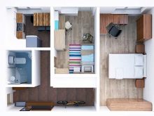 - rooms in the "mini-improved" all separate, and the bathroom is not connected to the bathroom. But this apartment option also needs improvement. The kitchen of 5 square meters is far from comfort. You can try to make out the pantry, move the bathroom and add a few meters to the kitchen;