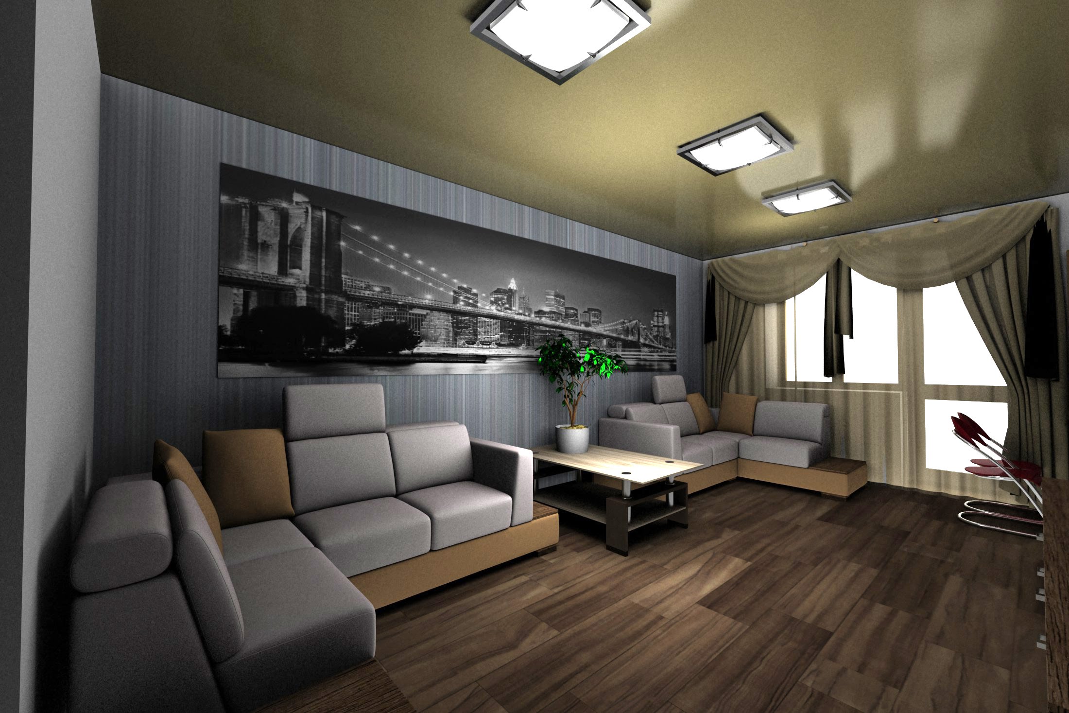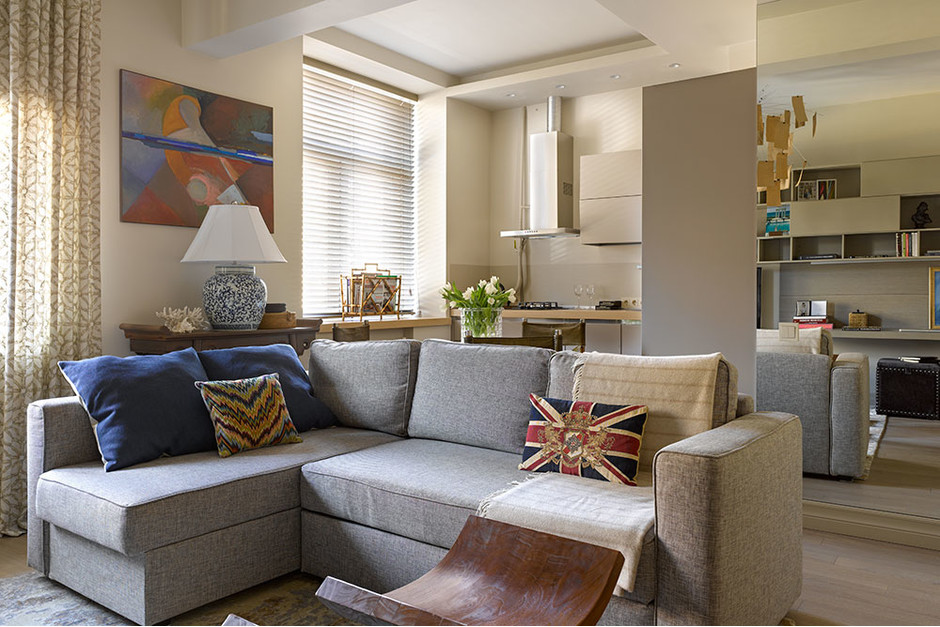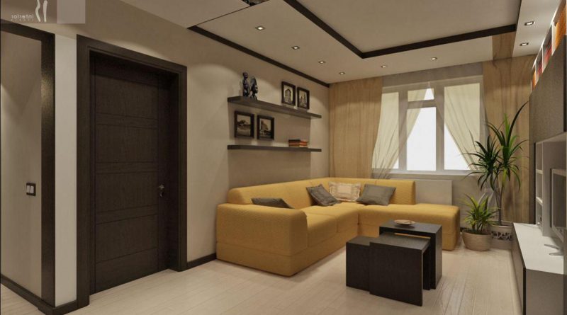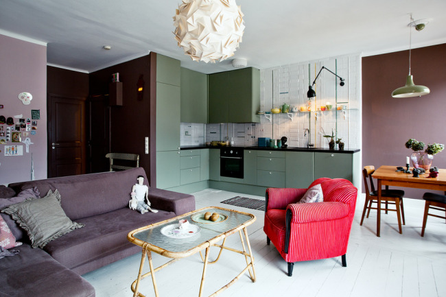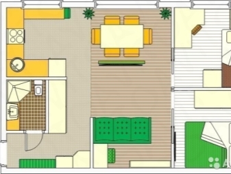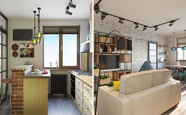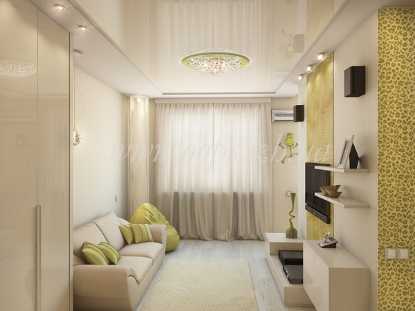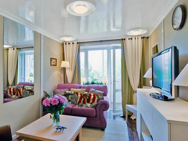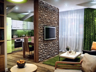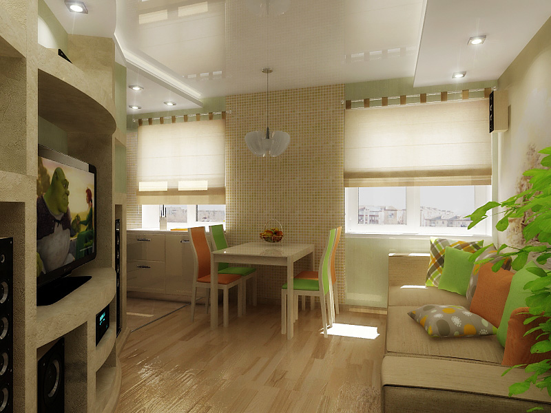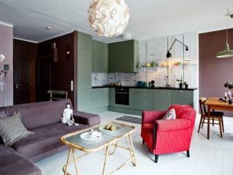 - combined living room with kitchen (do not forget that the working area of the kitchen should be closed at least with a movable partition);