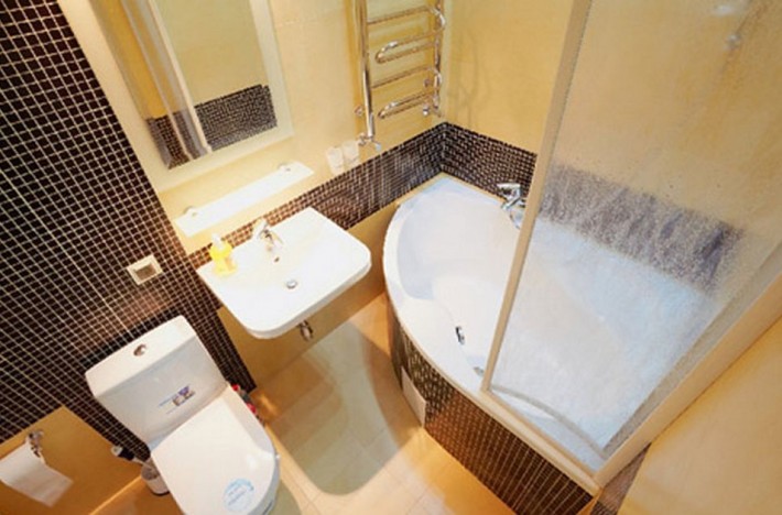 On the positive side is the ability to remove the walls indoors (as there are no load-bearing walls in the Khrushchev houses) and start the implementation of a new project with any fantasy. Most often rebuilt kitchen and corridor. Many combine the bathroom. In its original form, the bathroom contained a sink and the bathroom itself (there was no space for a washing machine). Combining the bathroom, the toilet is left in place, and the sewer riser can not be moved. Bathroom unfold to another wall or put a shower stall.