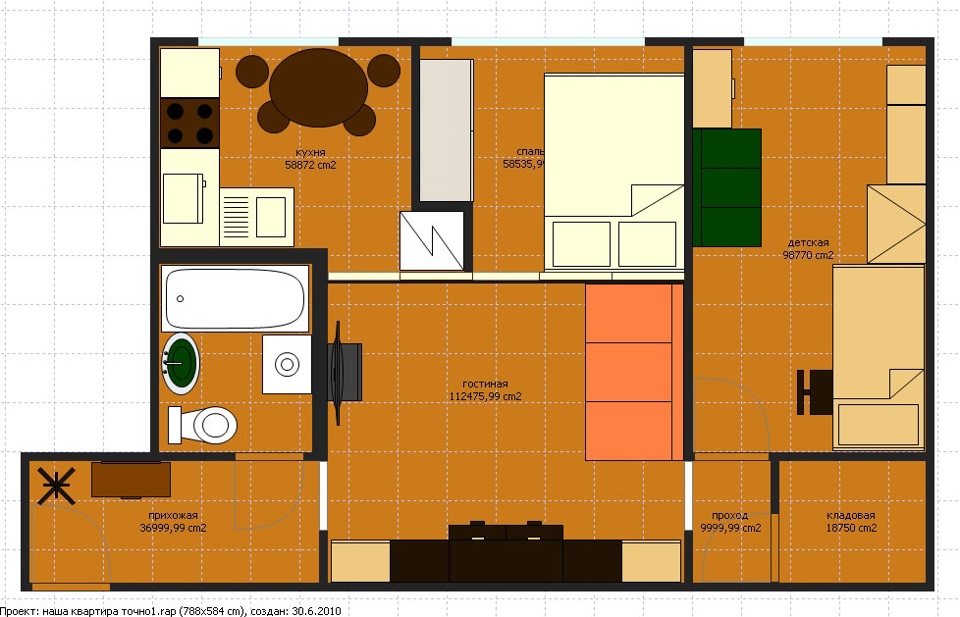 - to expand the bathroom, bathroom at the expense of the living room or kitchen. This can be done by dismantling the pantry or reducing the corridor;