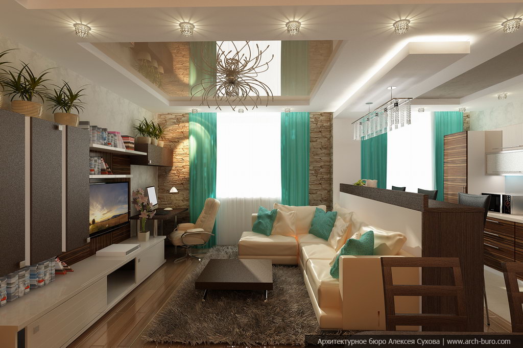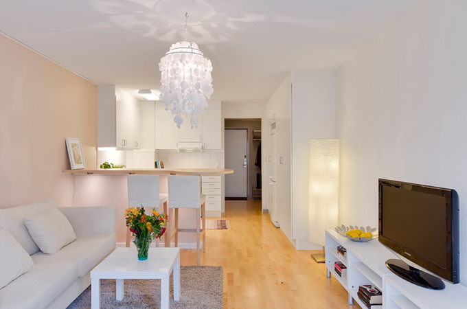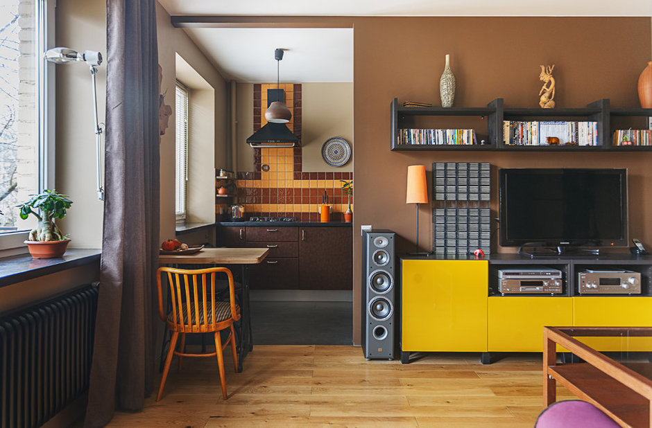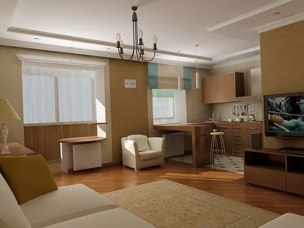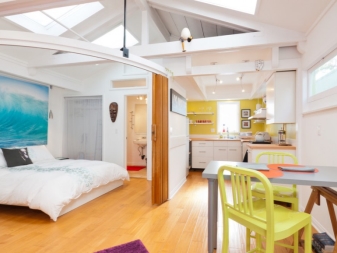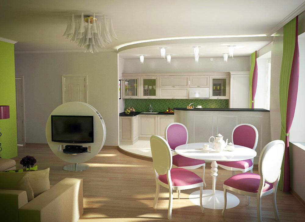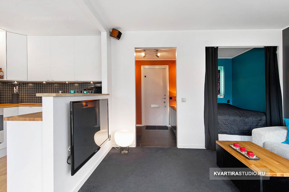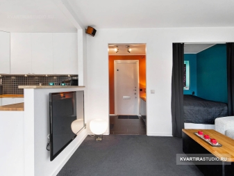 - You can make a studio from a one-room apartment if you are not satisfied with a small kitchen. This option is suitable for one person;